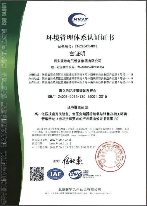 環(huán)境體系證書(shū):